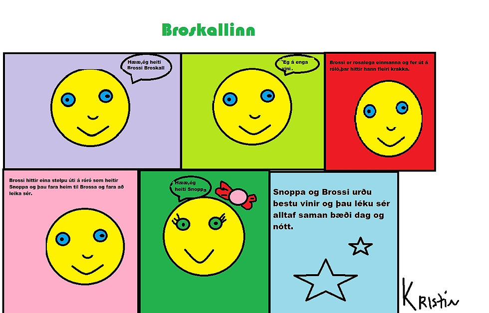 Verkefnið fyrir neðan er teiknað í Paint. Nemendur voru í 4. - 6. bekk. Markmiðið var að samþætta upplýsingatækni og myndmennt og þjálfa fínhreyfingar með mús. Nemendur máttu gera teiknimyndasögur eða teikna mynd. Verkefnið lagðist almennt vel í nemendur.